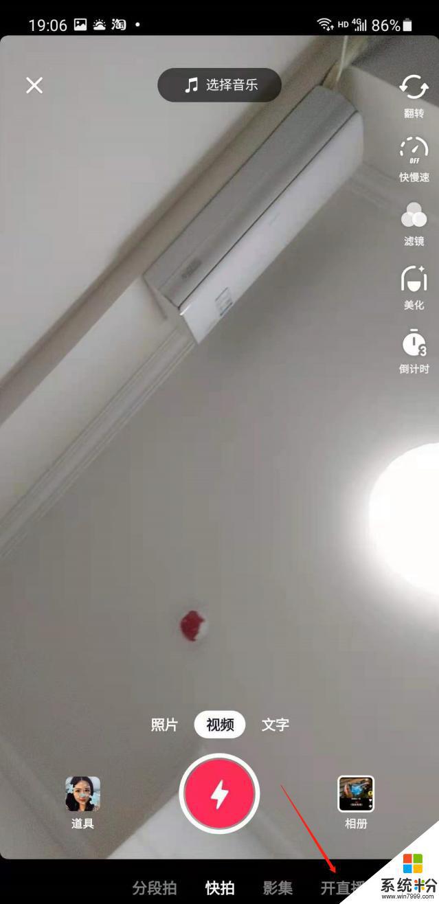2.点击下方的“开直播”。