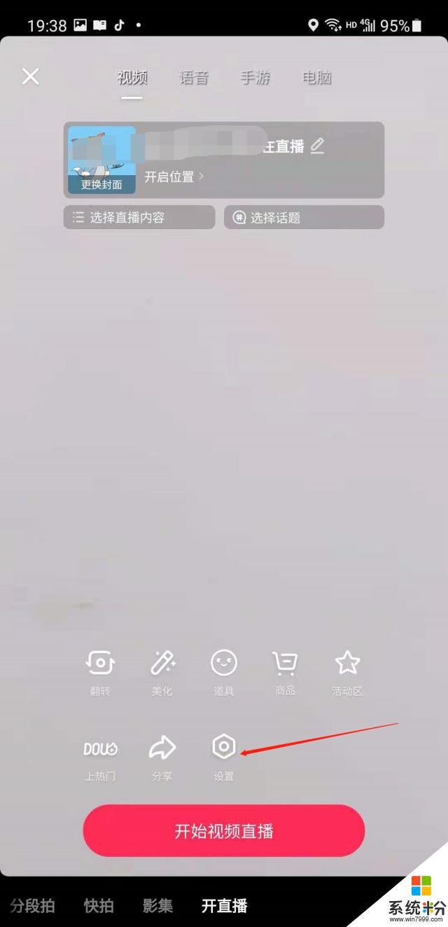 3.进入直播页面,点击设置选项。