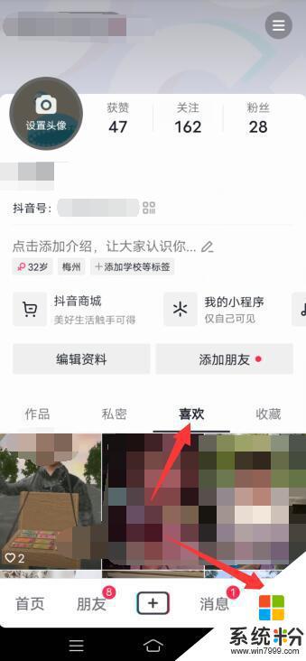 具体步骤如下:1.打开抖音,点击右下角的我,选择喜欢进入。